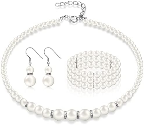 3 Pack Faux Pearl Jewelry Set 1920s Simulated Pearl Necklace Bracelet Earrings White Pearl Jewelry Sets for Women Bridesmaid Jewelry Set for Wedding Costume Jewelry for Women and Girls** ** ** **